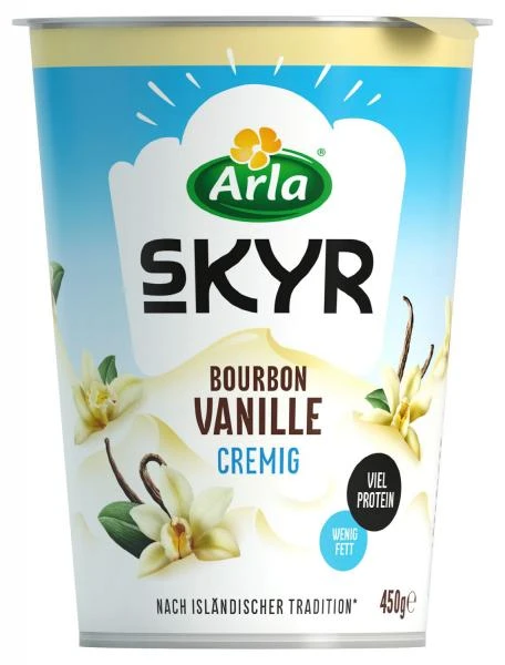 Unser Arla Skyr Bourbon Vanille ist Dein frischer Snack mit natürlicher Vanille nach isländischer Tradition. Er vereint viel Protein, weniger Zucker sowie lediglich 0,2% Fett in einem Becher und ist sowohl pur als auch kombiniert mit Müsli oder Früchten ein Genuss.