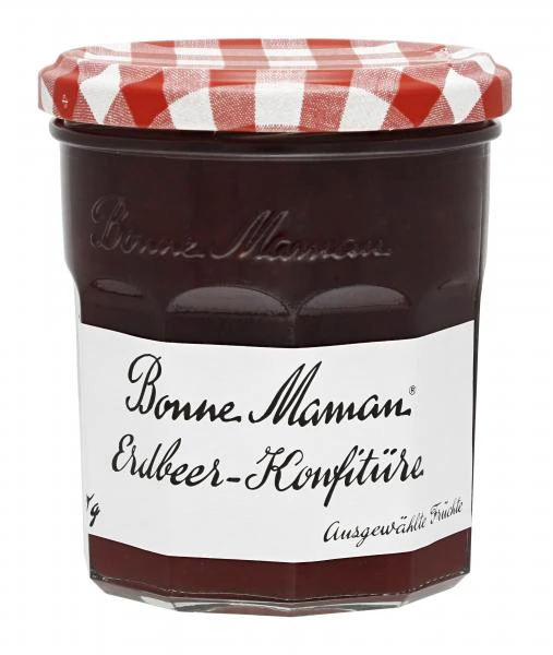 Mit ihren verführerisch zarten Fruchtstückchen schmeckt die Erdbeer-Konfitüre von Bonne Maman nicht nur auf dem Brot, sondern auch direkt vom Löffel hervorragend.