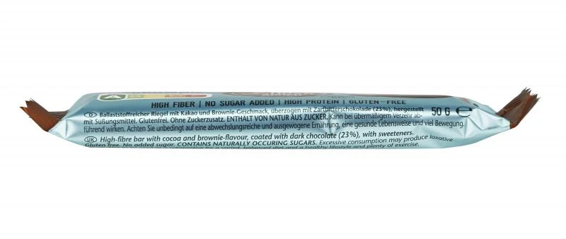 Ballastoffreicher Riegel mit Kakao und Brownie-Geschmack.