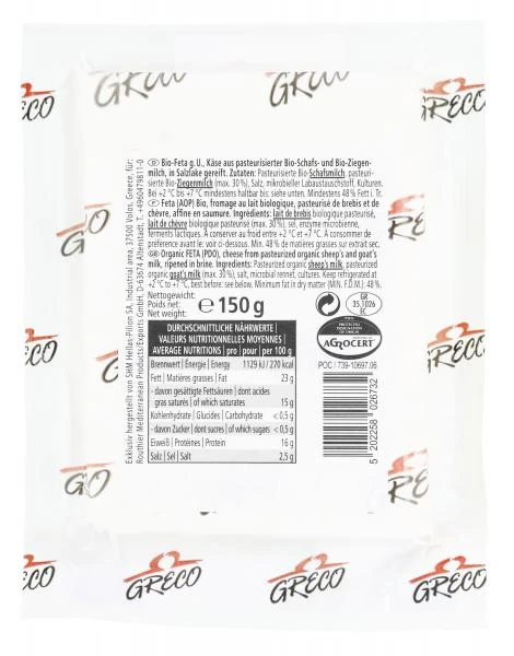 Griechischer Bio-Feta aus pasteurisierter Schaf- und Ziegenmilch. Bio-Feta reift in einer Salzlake aus Meersalz. Die Herstellung erfolgt nach klaren, europaweit gültigen, gesetzlich vorgeschriebenen Richtlinien zur Bioproduktion.