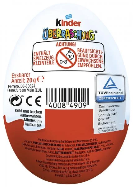 Artikelnummer: Y29TY 4502032698 Kategorien: Kugeln, Eier & Dragees, Schokolade & Pralinen, Süßes & Salziges Schlagwort: Kinder