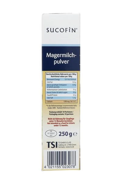 Der Inhalt dieser Packung entspricht ca. 2,5 Liter entrahmter Milch. Sucofin Magermilchpulver enthält Nährstoffe der Milch, wie Calcium und Eiweiß. Es eignet sich hervorragend zur Verwendung in Heiß- und Kaltgetränken (z.B. Milchdrinks, Tee oder Kaffee) sowie zum Verfeinern von Speisen (z.B. Desserts, Suppen, Saucen oder Milchreis).